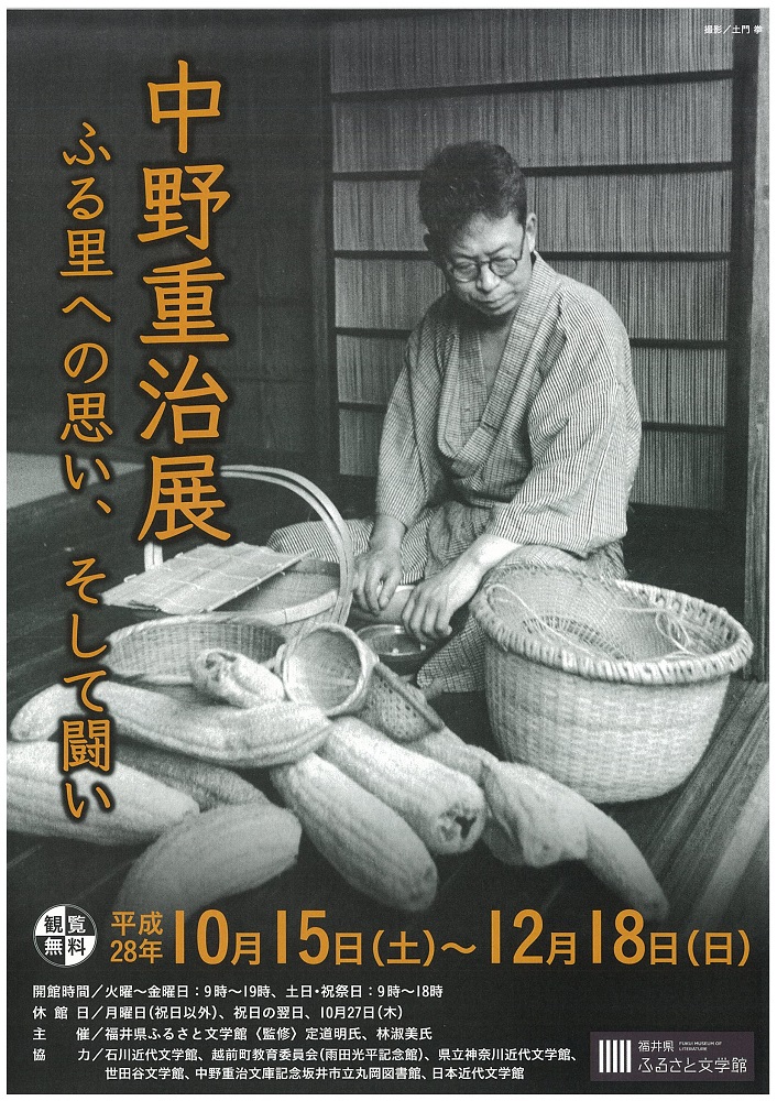 今年が没後20年となる小浜市出身の詩人、児童文学者山本和夫に関する資料や、おおい町出身の直木賞作家水上勉の本の挿画を多く手がけた司修氏の原画、福井の自然や歴史を題材にした小説を多く執筆した福井市出身の作家大島昌弘の草稿などを展示します。